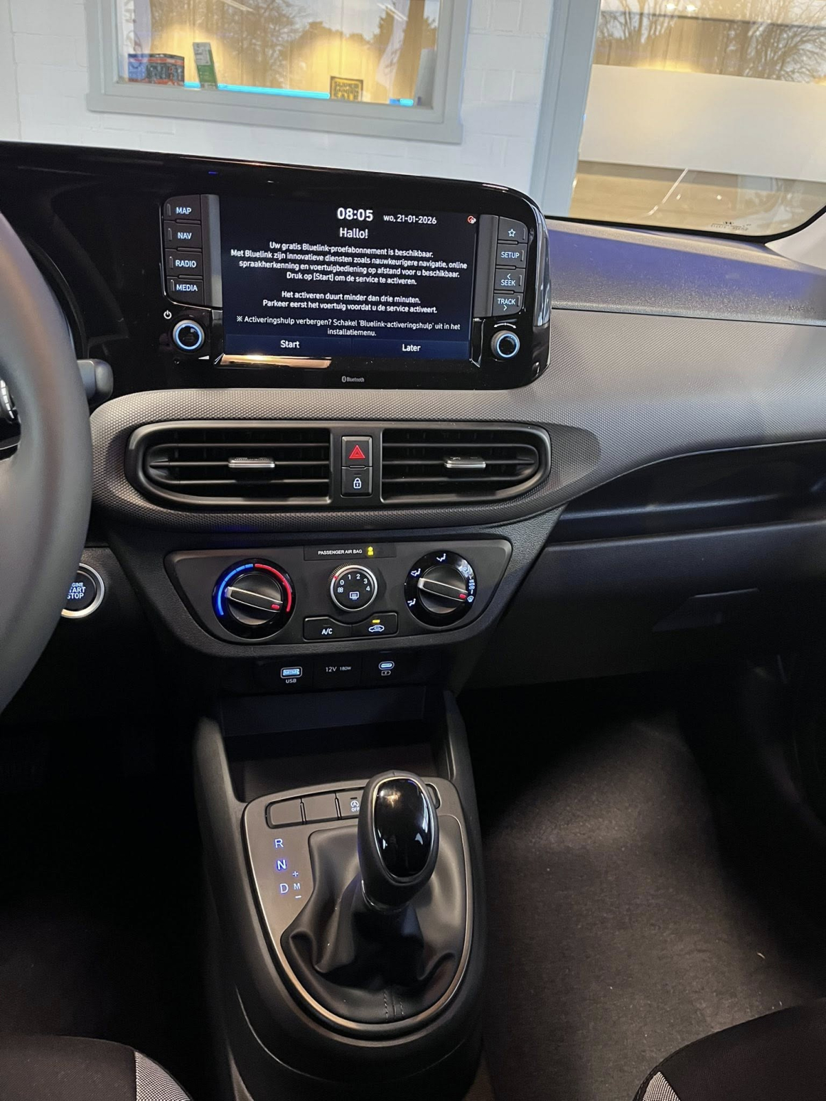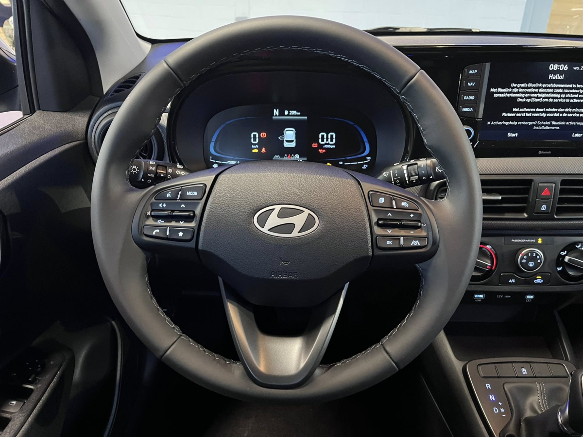 Hyundai i10 Techno Automaat - Navigatie € 18.950,00 BTW aftrekbaar Specificaties Bekleding Stof Bouwjaar 2026 Brandstof Benzine Kilometerstand 5 km Kleur buitenkant Blauw Transmissie Automatisch Vermogen 63PK Reserveren Maak een afspraak Download PDF Delen Comfort Verstelbaar stuurwiel Airconditioning Centrale deurvergrendeling met afstandsbediening Cruise control Neerklapbare achterbank In hoogte verstelbare stoelen Keyless Go Lederen stuurwiel Lichtsensor Elektrische ramen Getinte ramen Infotainment AUX-aansluiting Bluetooth Digitale radio-ontvangst DAB/DAB+ Handsfree Multifunctioneel stuur Navigatiesysteem Boordcomputer Smartphone-integratiepakket (Android Auto & Apple Carplay) Aanraakscherm USB Veiligheid ABS Automatische Tractie Controle Botswaarschuwing ESP Startonderbreker Isofix (Kinderstoel bevestiging) Lane departure warning system Buitentemperatuurmeter Parkeersensoren achter Donkergetinte privacy ruiten Bandenspanningscontrole system Traction Control Exterieur Lichtmetalen velgen Verlichting Dagrijlichten